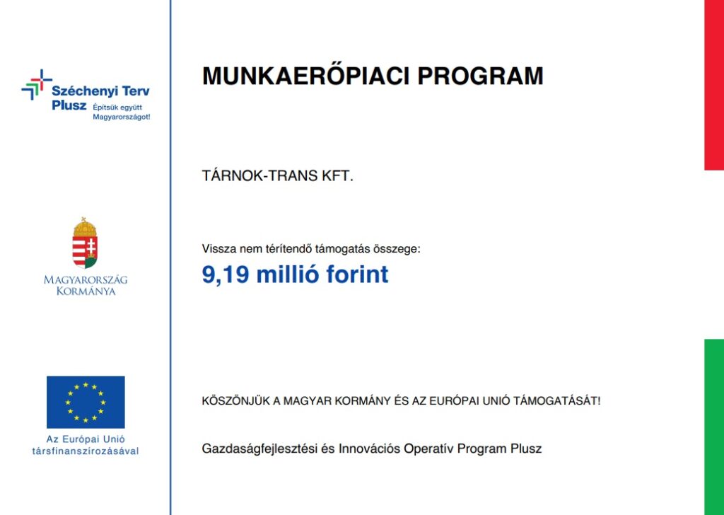 A kedvezményezett neve: Tárnok-Trans Kft. (7200 Dombóvár, Mikes Kelemen u. 34. – 25798524-2-17)